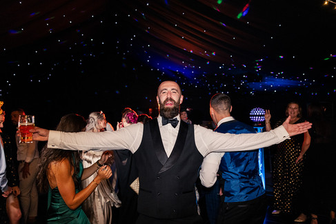 As the Sun dipped below the horizon, we whisked Jess and Tom away for some dramatic photos. We let smoke bombs envelop them aided gleefully by Tom's groomsmen! And just before we departed, we lit sparklers for a final burst of fun!