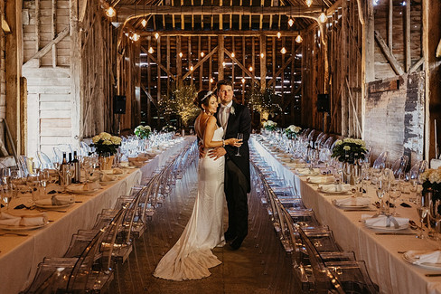The wedding ceremony took place in St Peter's church in Barham, Suffolk which lies on the edge of the family farm and was packed with well-wishers. Beautiful floral displays and bouquets were provided by Khloris of Needham Market. After a long confetti-tunnel, the newlyweds departed in a magnificent Jaguar XK120 convertible. This stunning car has been painstakingly restored by a close family friend and almost got as much attention as the bride and groom! At the request of the couple, we included this fine vehicle in many of their portraits. One of the farm's huge barns had been converted to hold the wedding breakfast and evening reception with delicious catering provided by My Kitchen, Your Place of Lavenham, Suffolk