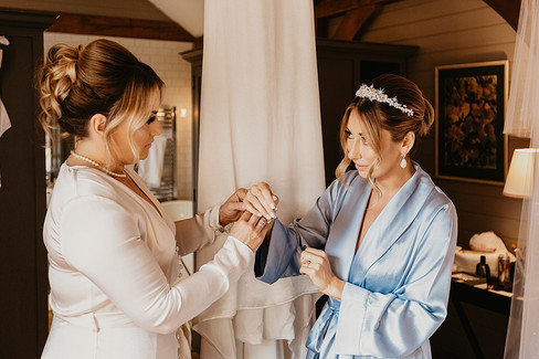 This wonderful wedding took place around a beautiful, imposing farmhouse in Barham, Suffolk which has been in the family for generations. Our groom, Nick, his bestman and groomsman got ready at the home before they moved to a nearby pub to finalise their preparations!!. Bridal preparations took place nearby at Retreat East in Hemingstone. Francesca wore the most beautiful wedding dress - Monstera from Ukrainian designer Alena Leena. Each dress is made bespoke but the breakout of the war meant Francesca's dress couldn't be completed. The designer however located a similar sample in the United States and shipped to the UK for completion. The quality and design of this wedding dress was absolutely exceptional - one of the finest we've ever seen.